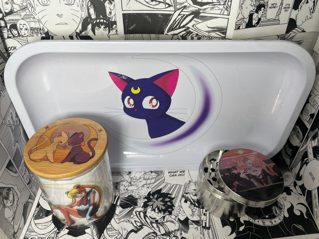 Luna and Artemis Grinder, Jar, Rolling Tray Set