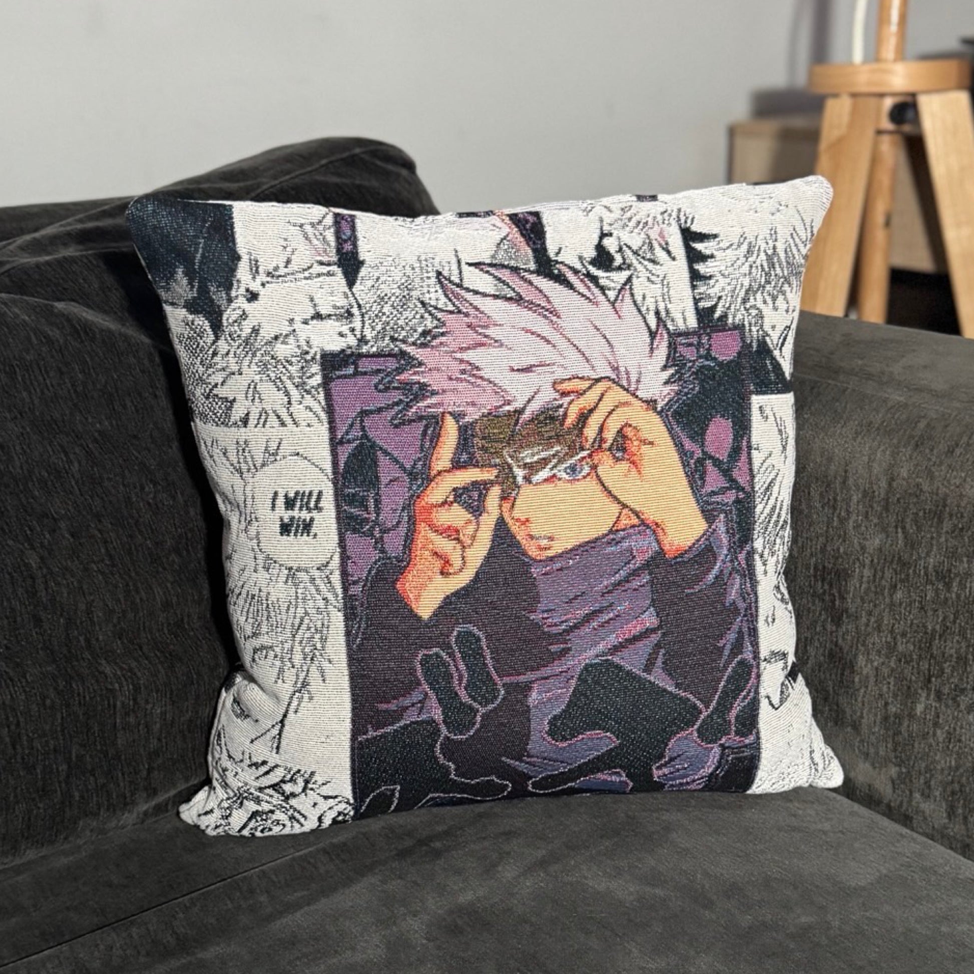 Blind Gojo Hand-Woven Tapestry Cushion Case, Anime Pillow Cover