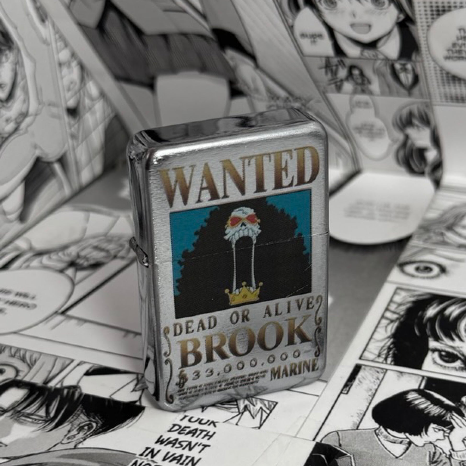 Lighter: High-quality flip lighter with anime designs printed on both sides. Available in matte white or chrome silver finishes.