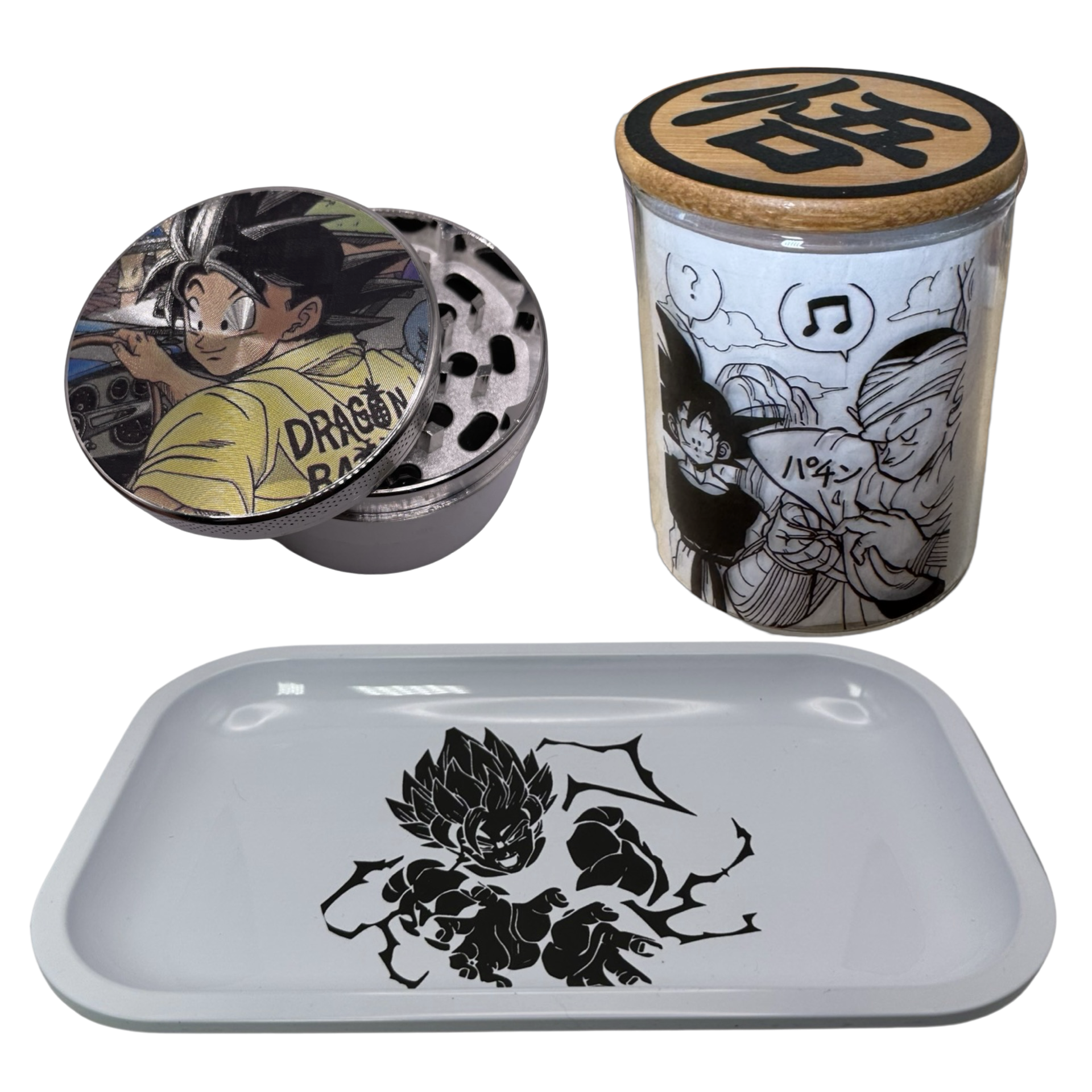 Chill Goku Grinder, Jar, Rolling Tray Set