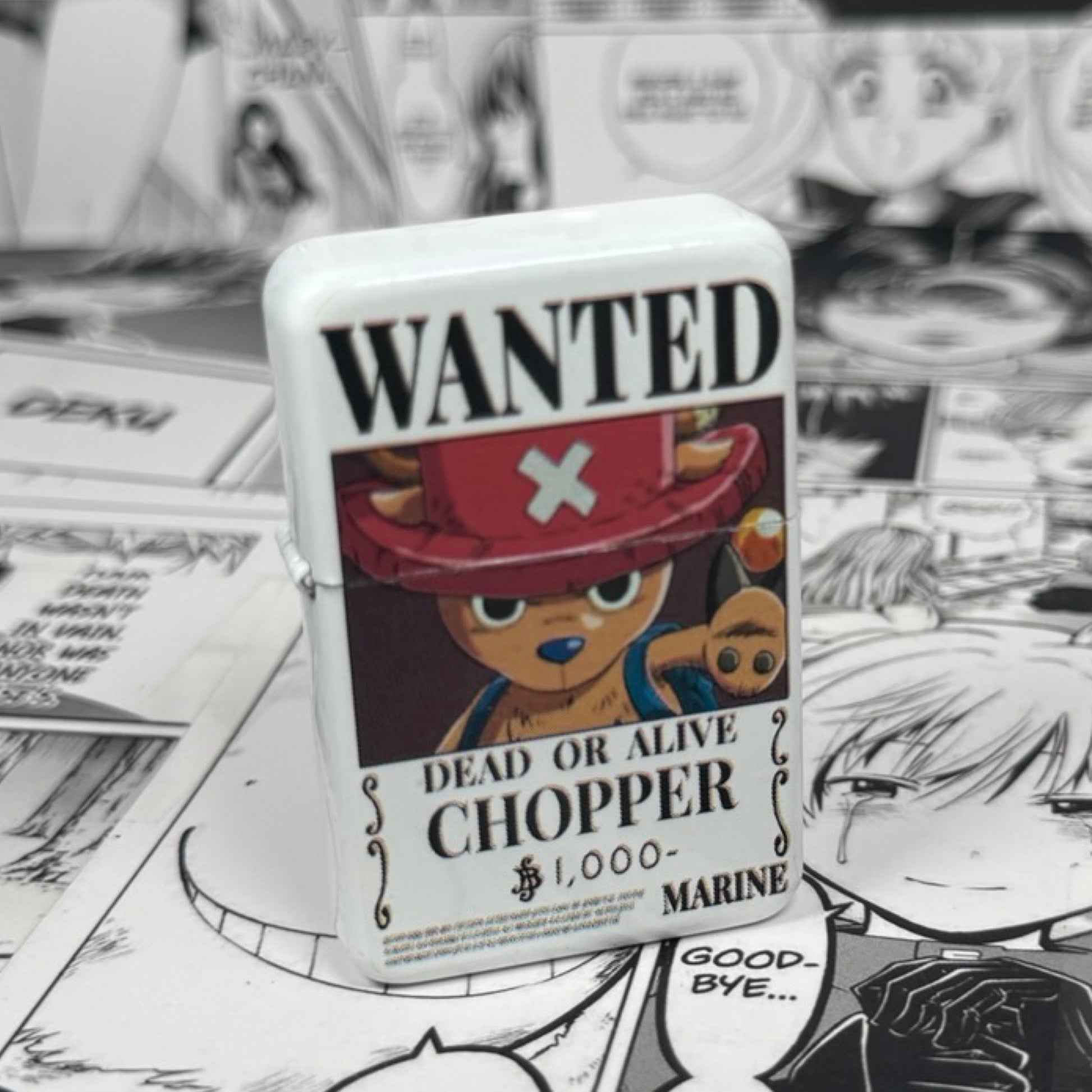 Lighter: High-quality flip lighter with anime designs printed on both sides. Available in matte white or chrome silver finishes.