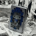 Lighter: High-quality flip lighter with anime designs printed on both sides. Available in matte white or chrome silver finishes.