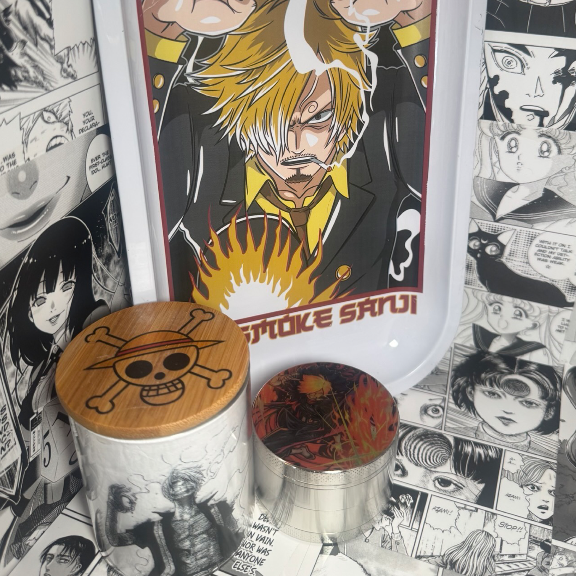 Fire Sanji Grinder, Jar, Rolling Tray Set