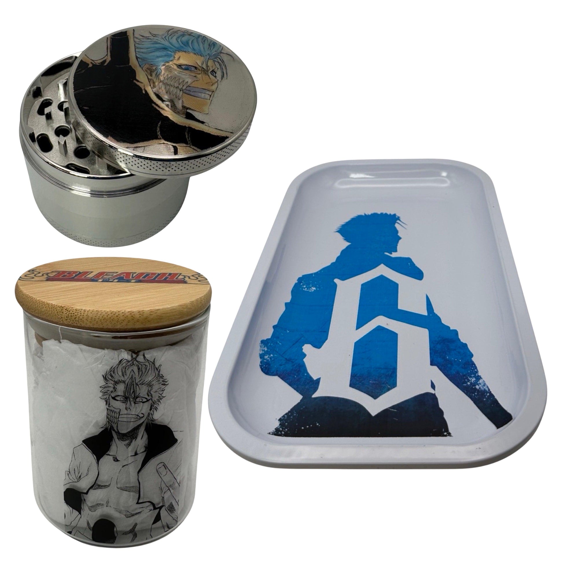Grimmjows Hand Grinder, Jar, Rolling Tray Set