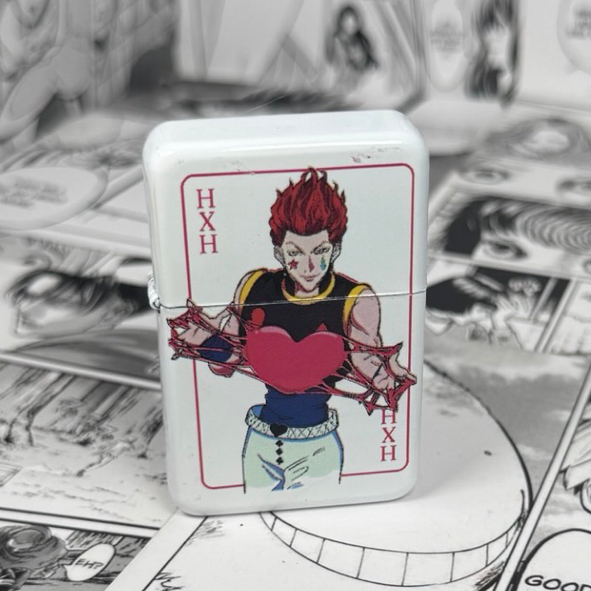 Lighter: High-quality flip lighter with anime designs printed on both sides. Available in matte white or chrome silver finishes.