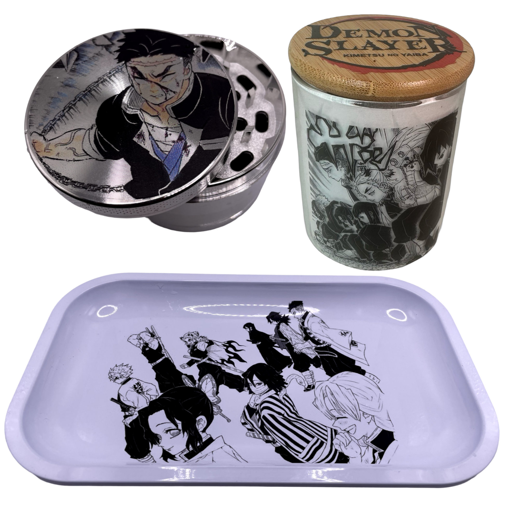 Gyomei Chained Flail and Axe Grinder, Jar, Rolling Tray Set