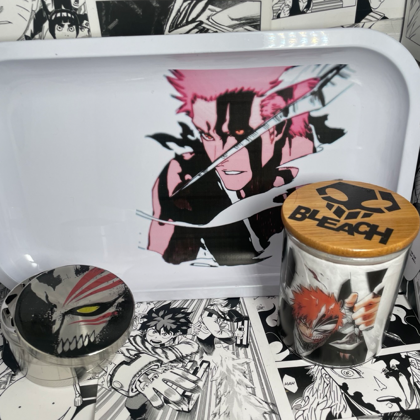 Ichigo Hollow Mask Grinder, Jar, Rolling Tray Set