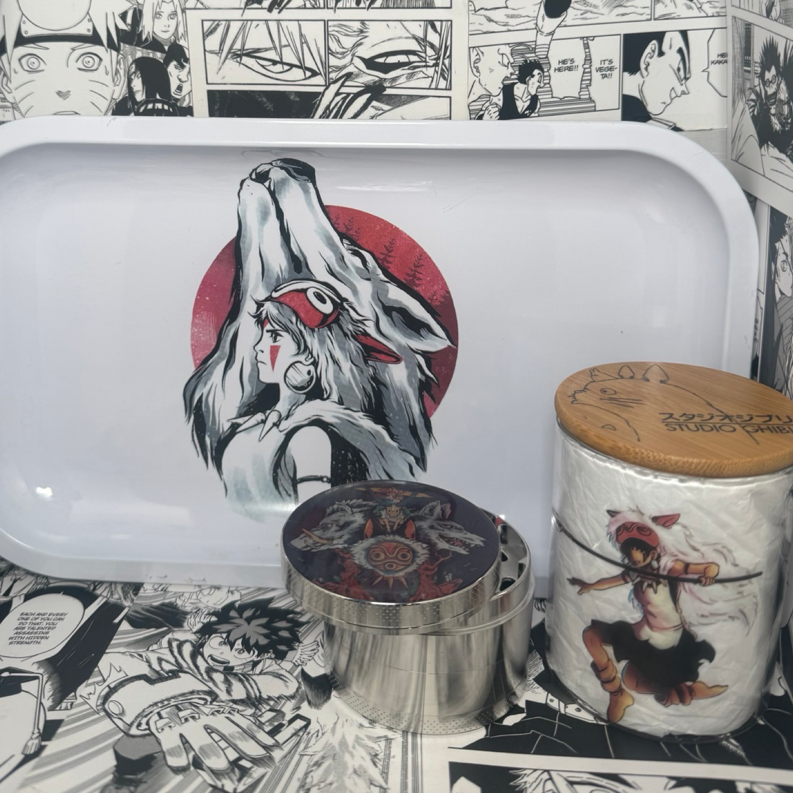 Mononoke and Moro Grinder, Jar, Rolling Tray Set
