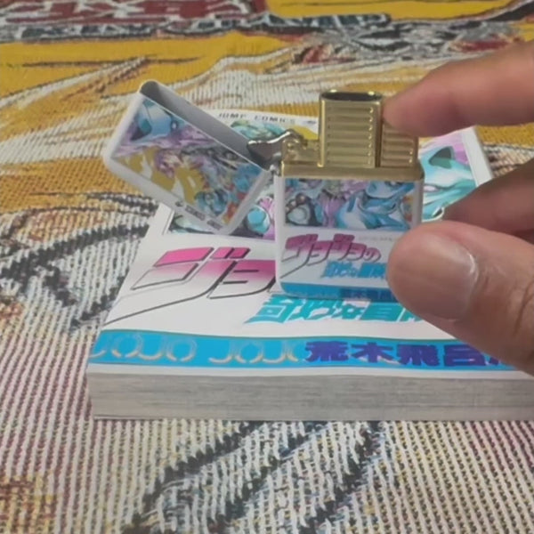 Lighter: High-quality flip lighter with anime designs printed on both sides. Available in matte white or chrome silver finishes.