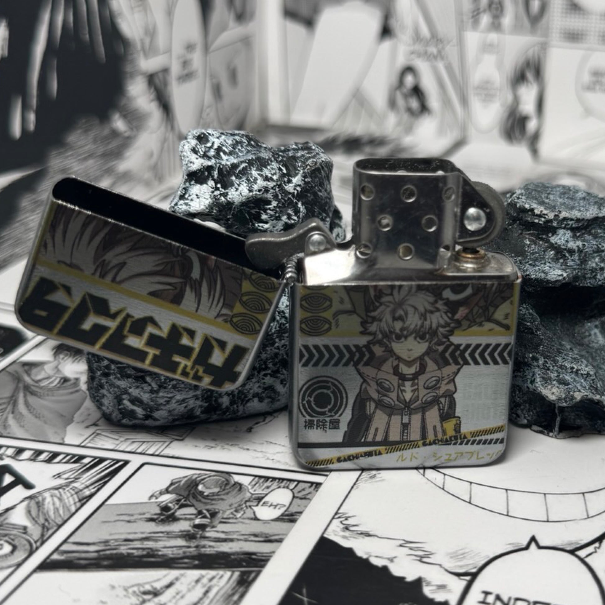 Lighter: High-quality flip lighter with anime designs printed on both sides. Available in matte white or chrome silver finishes.