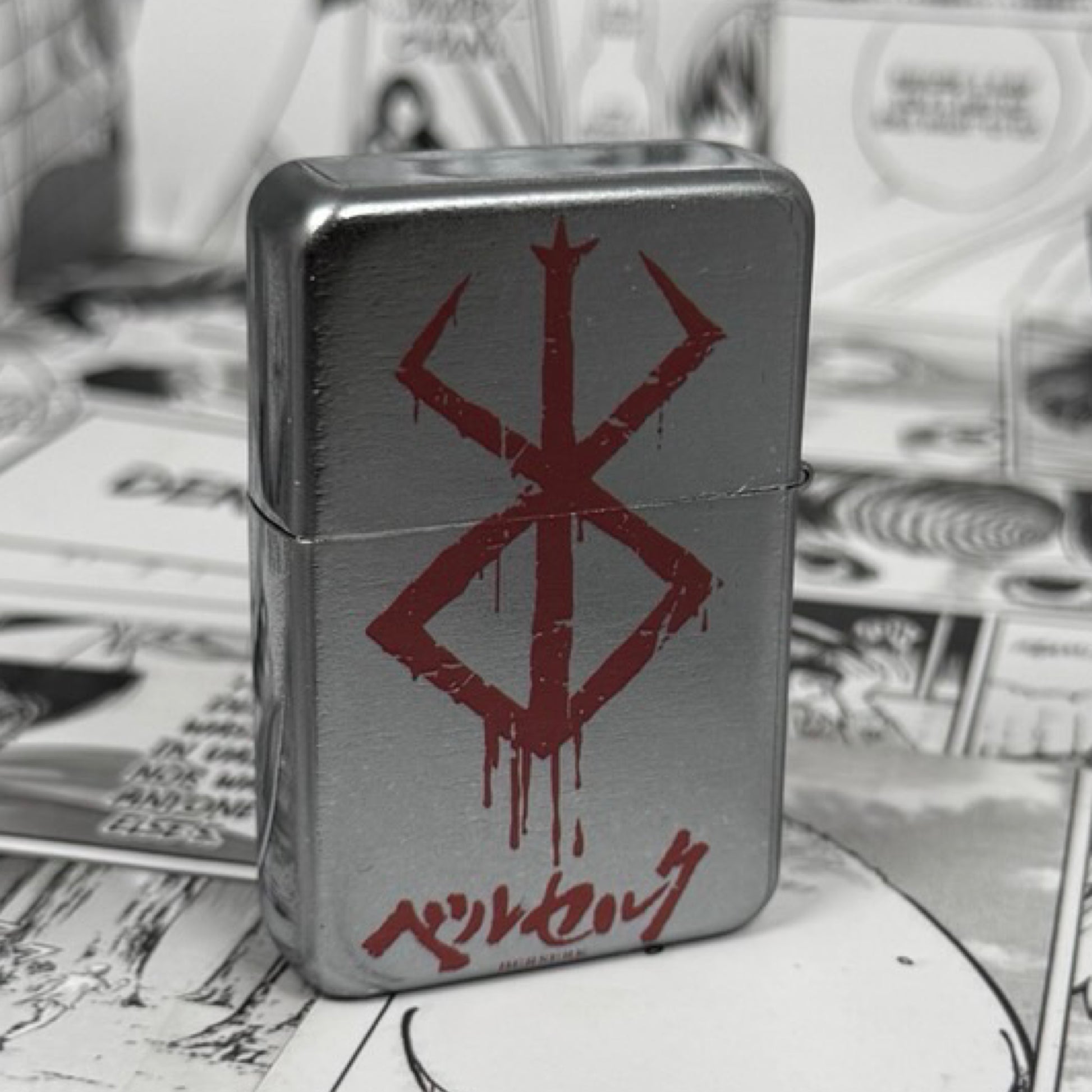 Lighter: High-quality flip lighter with anime designs printed on both sides. Available in matte white or chrome silver finishes.