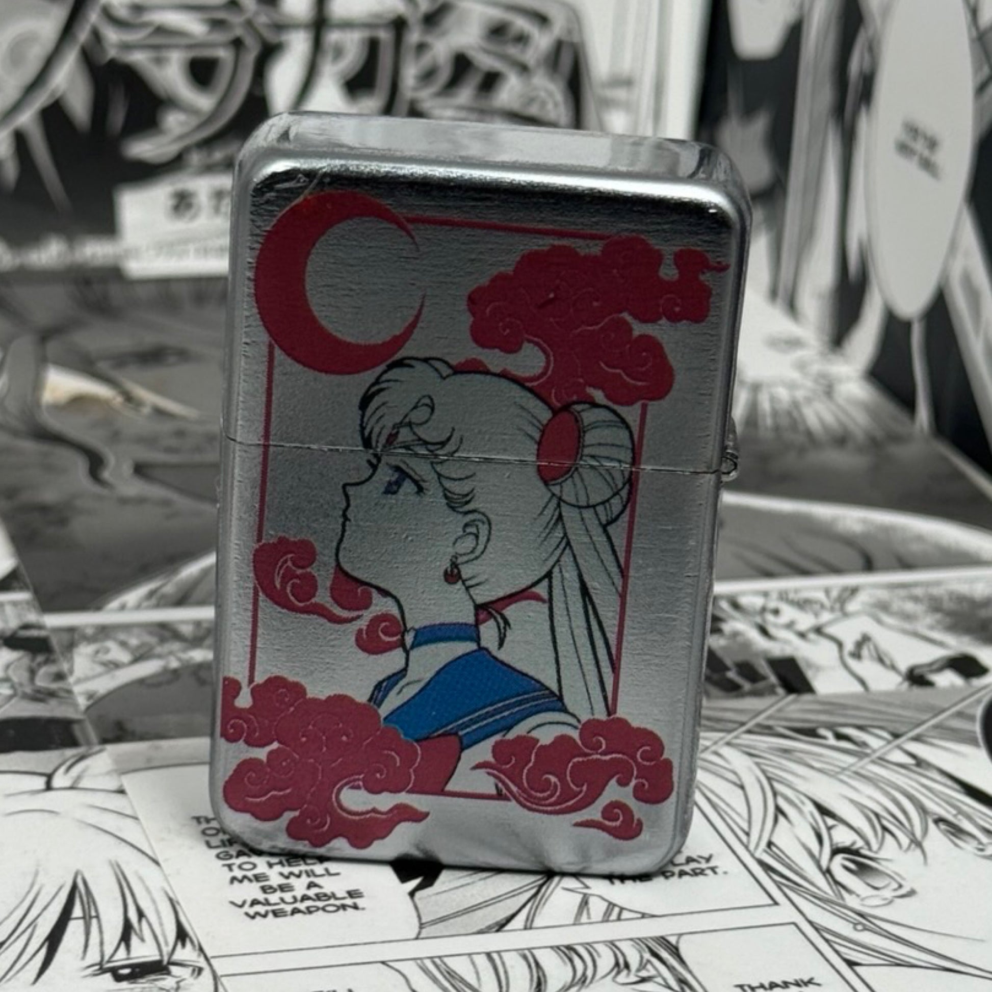 Lighter: High-quality flip lighter with anime designs printed on both sides. Available in matte white or chrome silver finishes.
