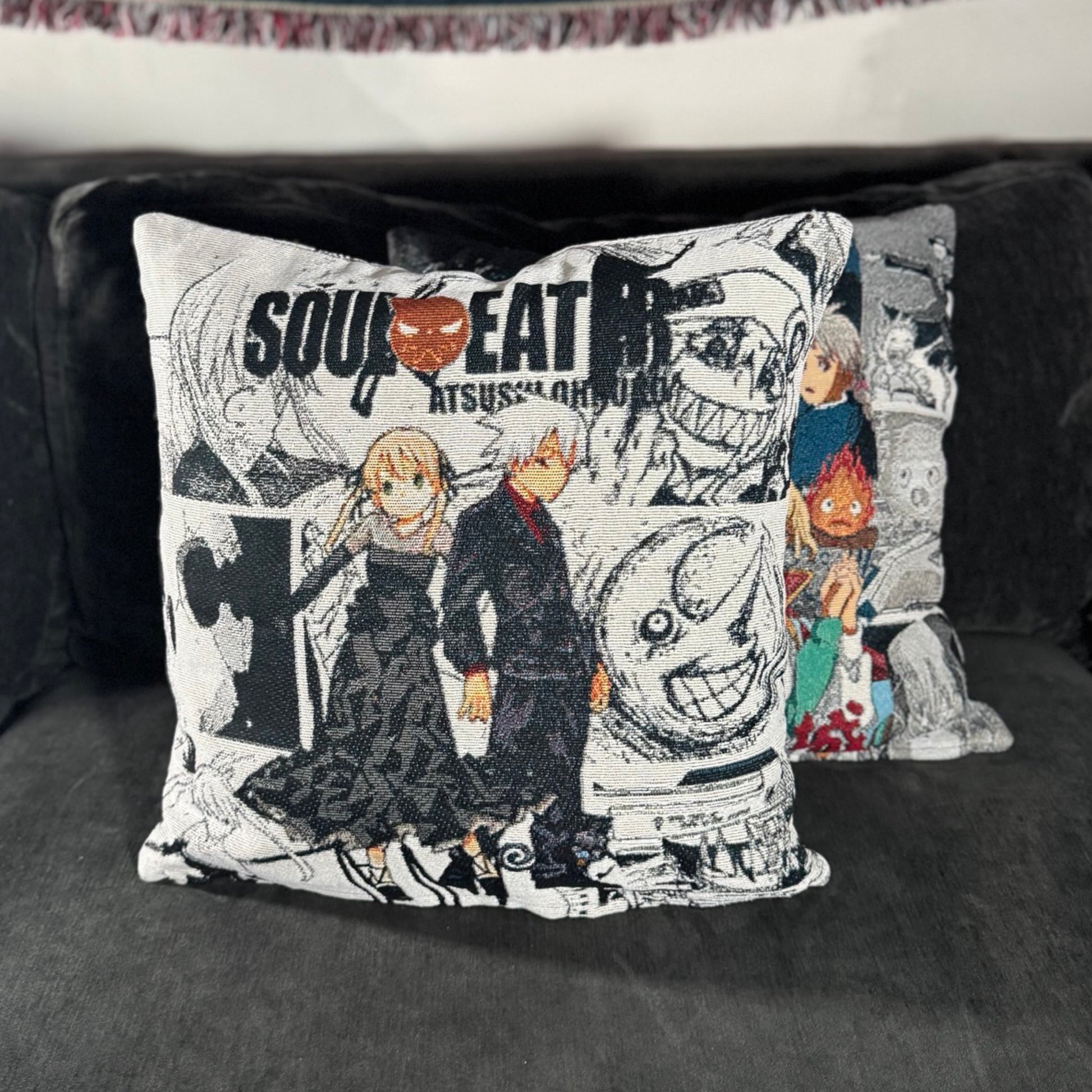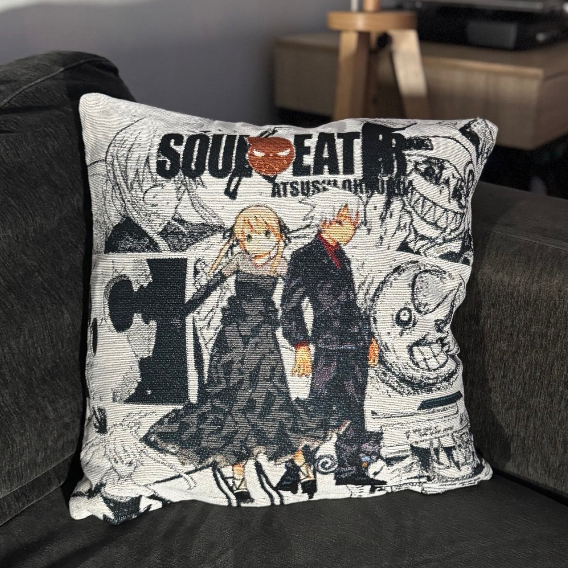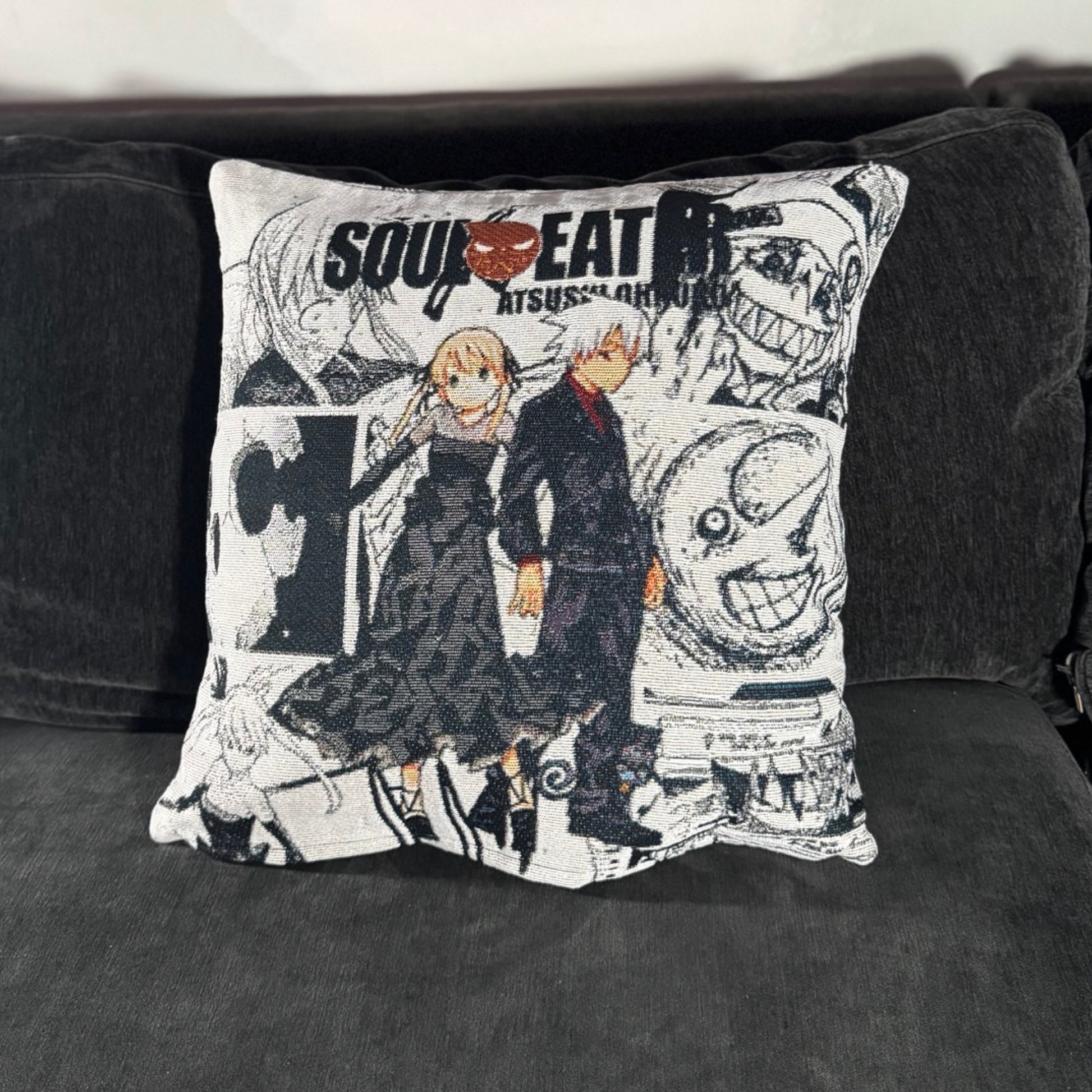 Soul and Maka Hand-Woven Tapestry Cushion Case, Anime Pillow Cover